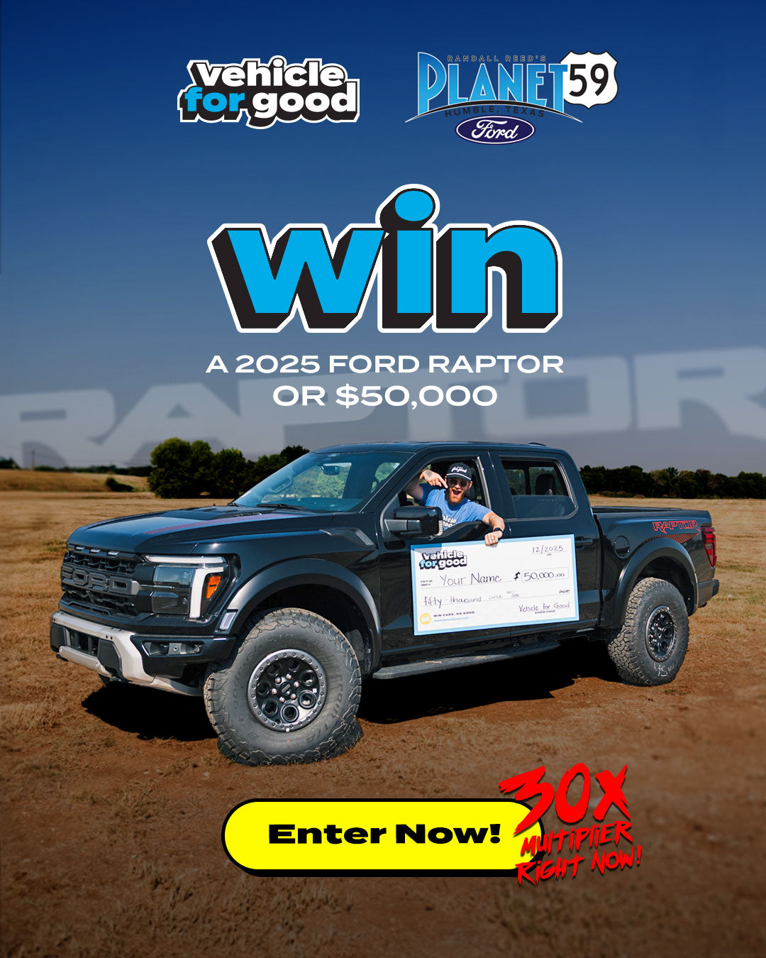 “#11 – 2025 Ford Raptor or $50,000” Sweepstakes