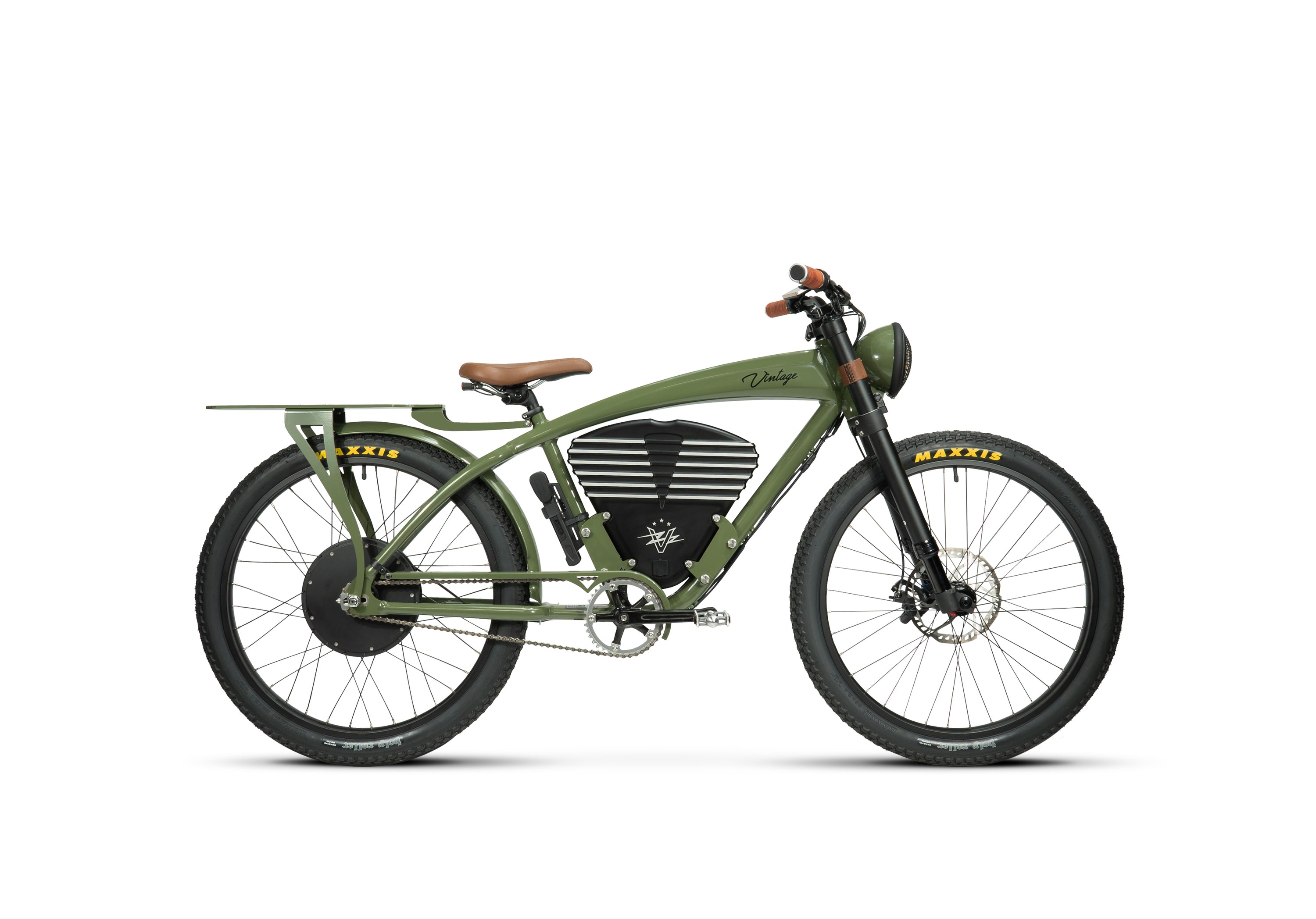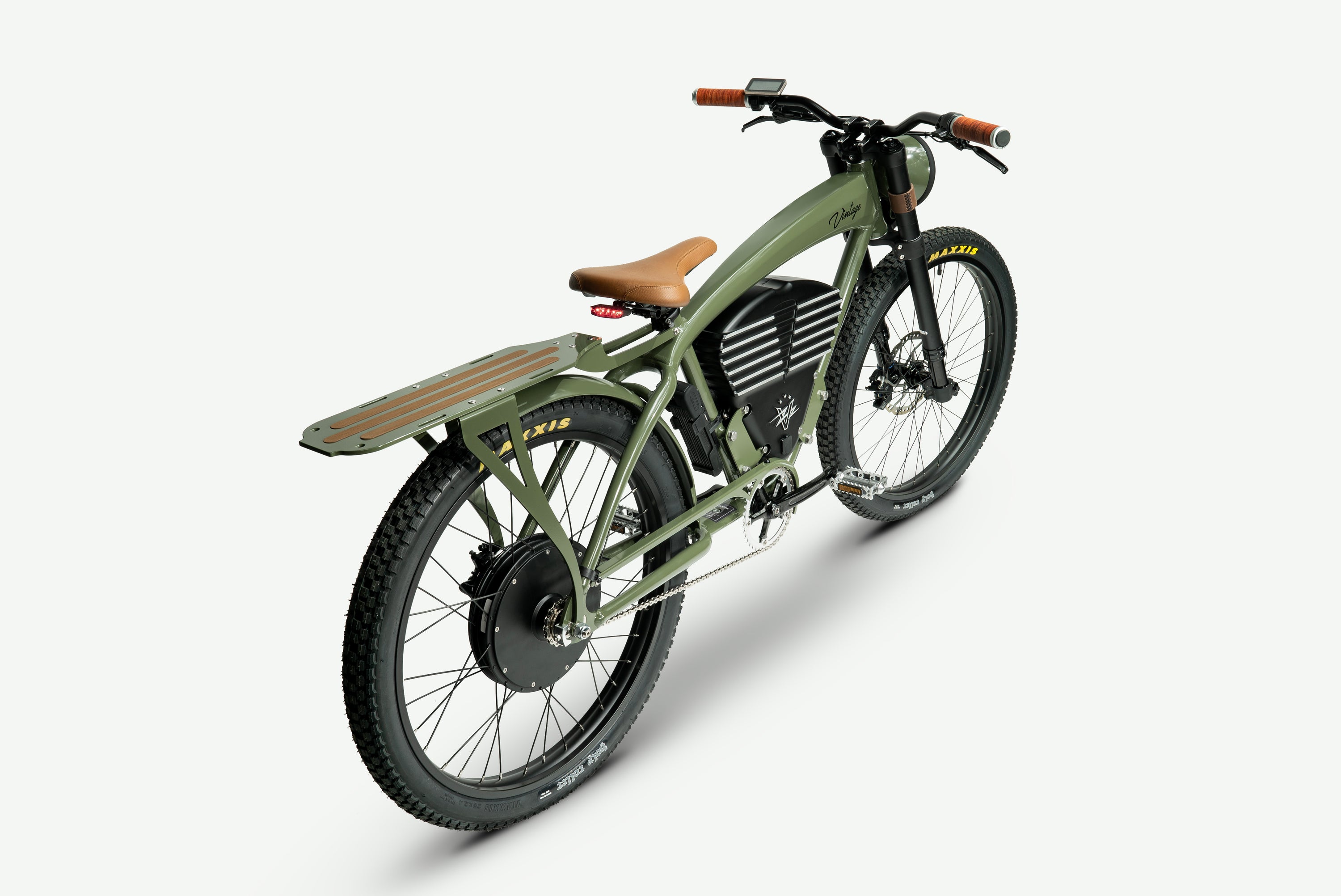 - Design & features: Vintage-inspired motorcycle styling (retro board-track cues), integrated LED lighting (headlight + taillight), hand-crafted leather saddle/grips